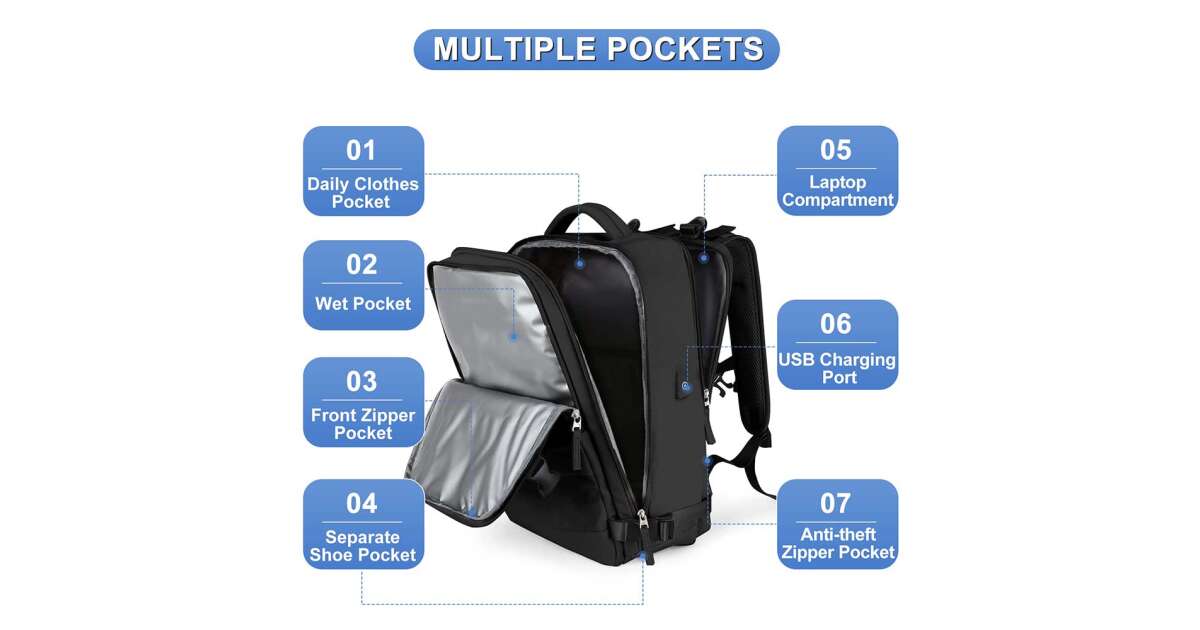 - Samostatná priehradka na topánky: so vzdušnými otvormi pre zachovanie sviežosti 👟