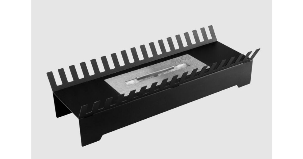 Bioetanolová krbová vložka FENIKS, 45 x 6,7 x 13,2 cm, biokrbová vložka, s keramickými polenami, horák z nehrdzavejúcej ocele, ozdobné biele kamienky, lievik, aromaterapeutická nádržka, plynový zapaľovač na rozsvietenie! popis