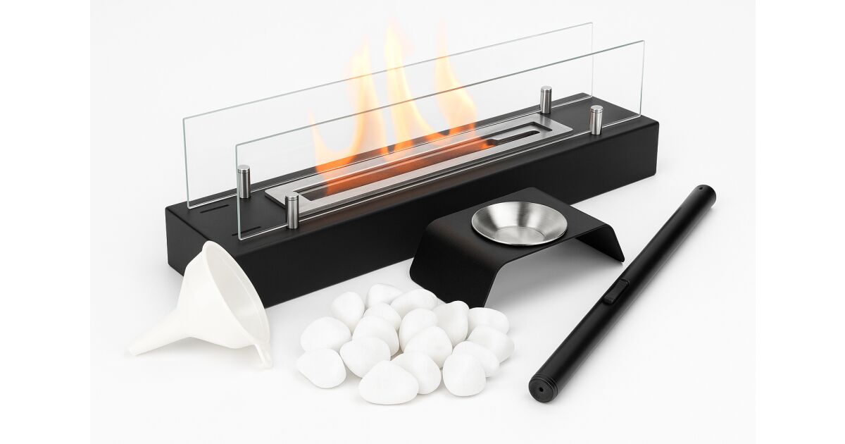 1 x Čierny zapaľovač 21 cm špeciálny na zapálenie biokrbu 1 x Sada dekoratívnych bielych kamienkov 1 x Nádoba na aromaterapiu