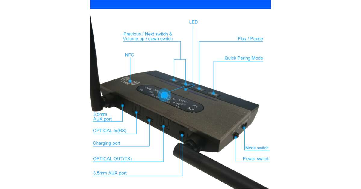 - Režim prijímača a vysielača: Pripojte svoje zariadenia Bluetooth k káblovým systémom alebo naopak. 🔄