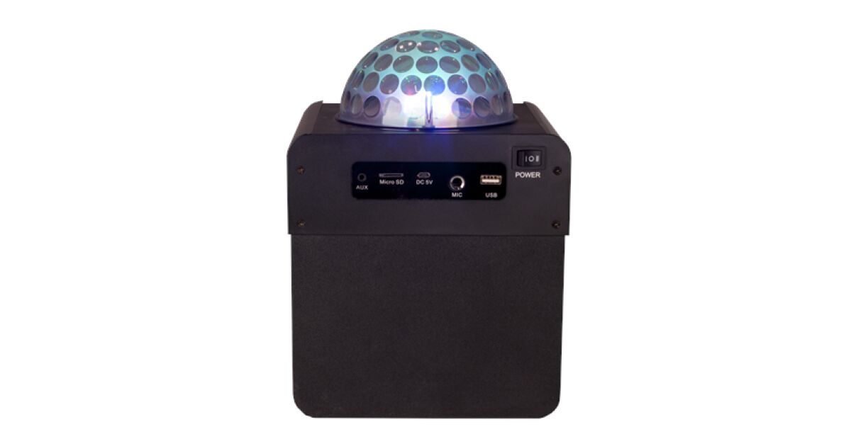 Tento ľahký, prenosný Bluetooth reproduktor rozprúdi každú párty! So vstavanou disko guľou a výkonom 50 W je skvelá atmosféra zaručená. Na jedno nabitie vydrží hrať až 6 hodín! 🎉
