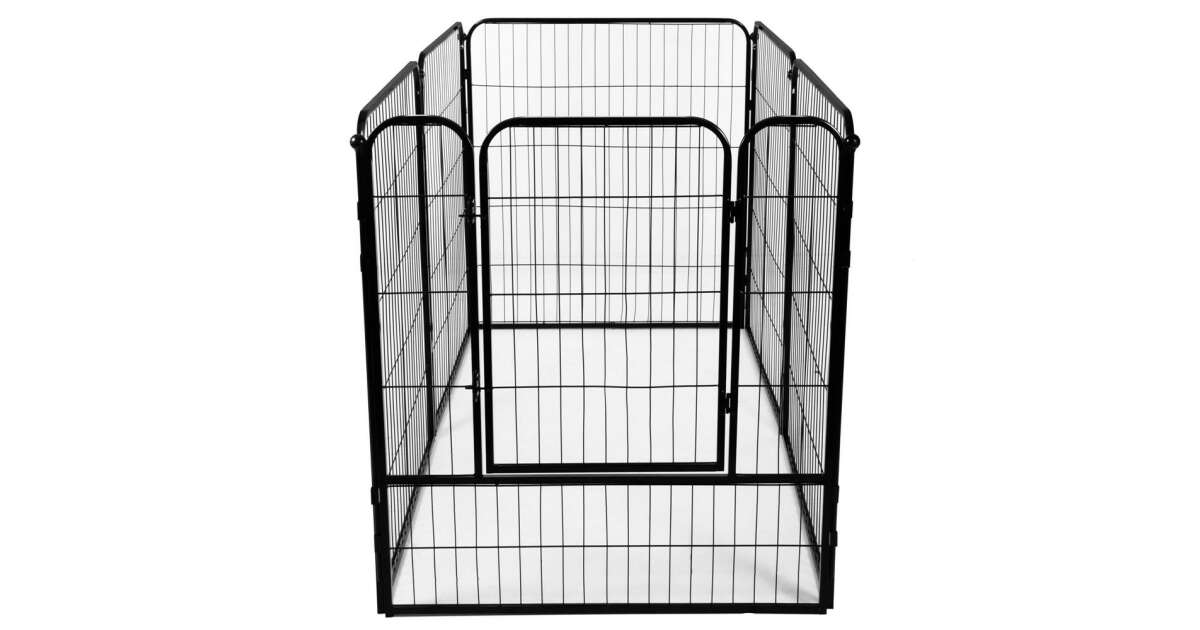 -Železný koterec pre domáce zvieratá, konfigurovateľný tvar, s prístupovými dvierkami, 4XL, 184x100x93cm, čierny popis