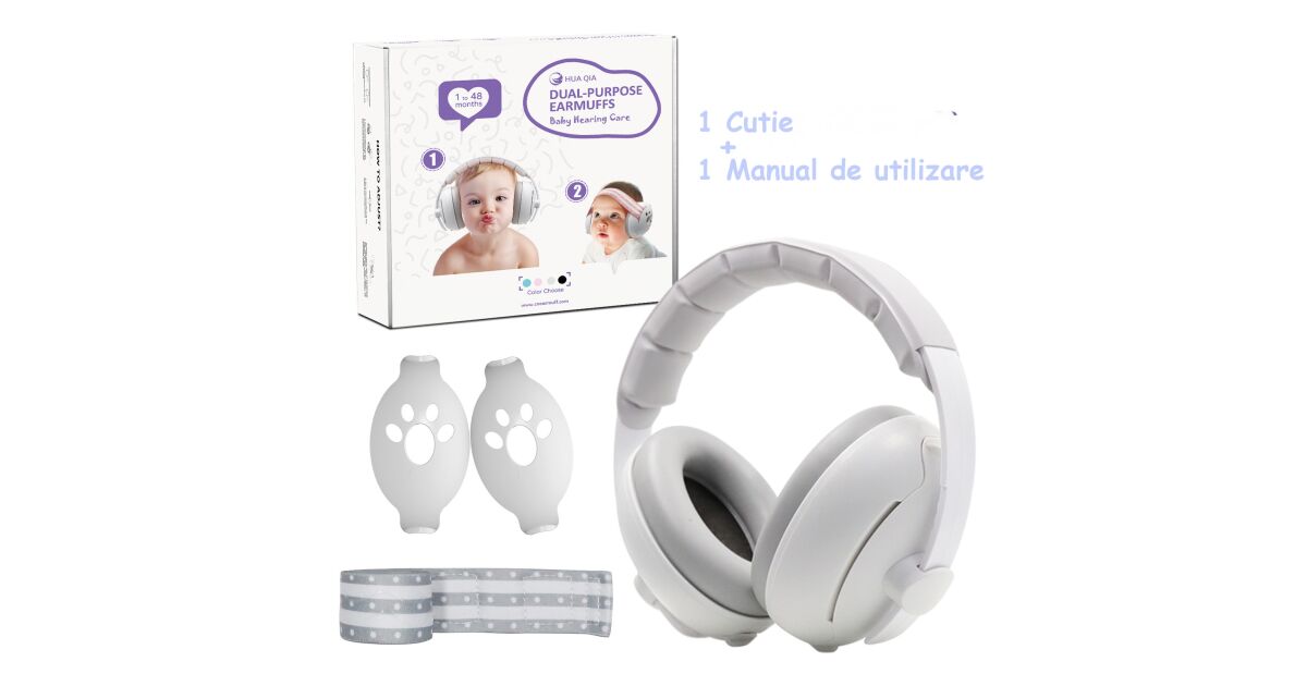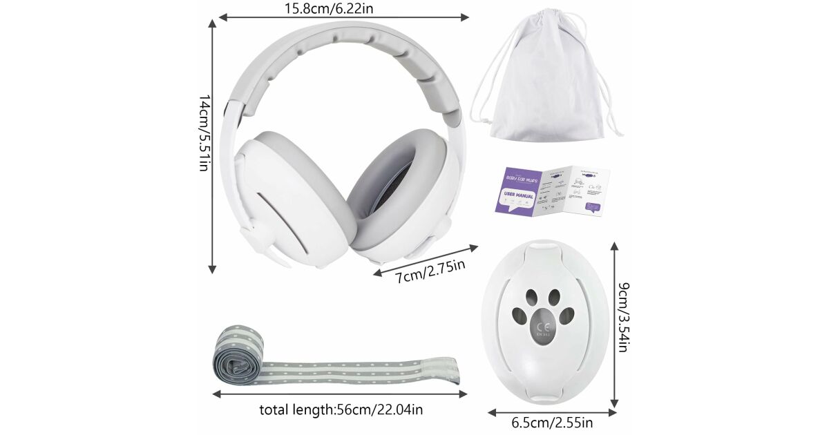 2 v 1 chrániče sluchu pre bábätká a deti 3-48 mesiacov WePro Store, mäkká a klasická elastická hlavová páska vynikajúcej kvality, ochrana sluchu v hlučnom prostredí, potlačenie hluku 25 dB, b popis