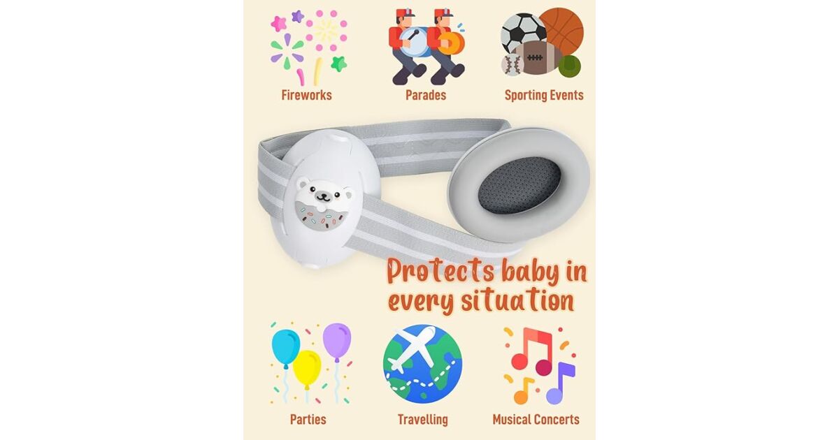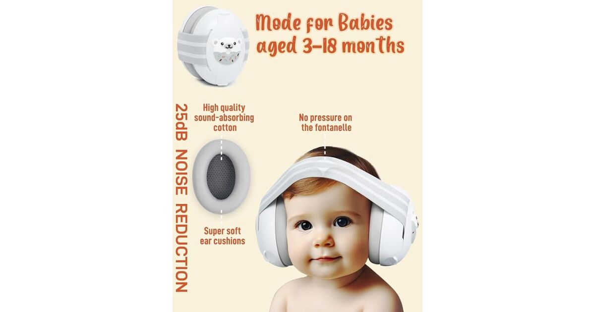 - Mäkké, pohodlné vankúšiky: Chrániče sluchu majú mäkké polstrovanie, ktoré zaisťuje pohodlné nosenie pre bábätká a malé deti. Žiadny tlak na hlavu!