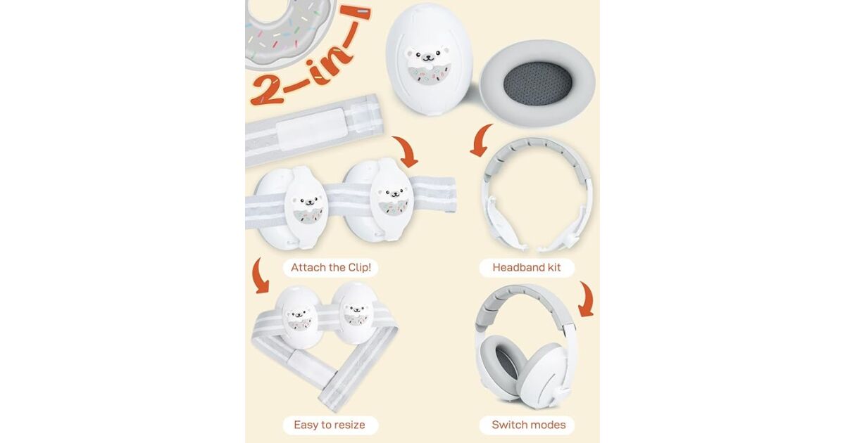 Tieto chrániče sluchu 2 v 1 sú dokonalým riešením na ochranu sluchu dojčiat a malých detí v hlučnom prostredí. Dajú sa používať dvoma spôsobmi: s flexibilnou čelenkou pre dojčatá a ako bežné slúchadlá pre staršie deti.