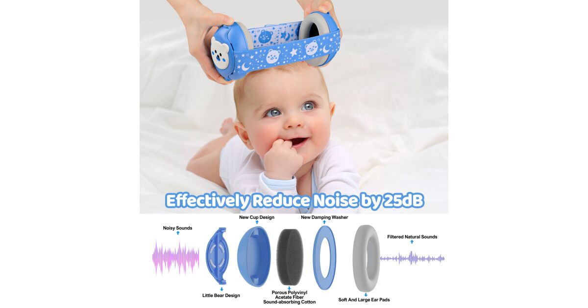 - 😴 Redukcia hluku: Chráni sluch bábätka pred škodlivými zvukmi (napr. koncerty, lietadlá).