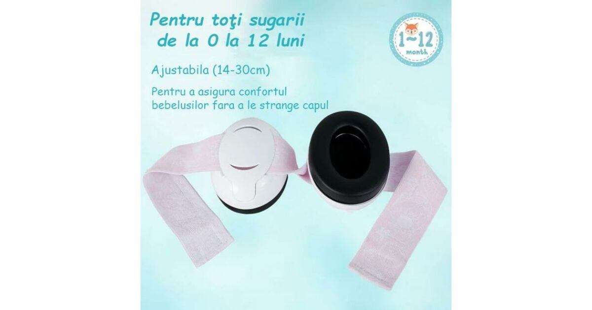 - Pohodlné a bezpečné: Vyrobené z mäkkého materiálu šetrného k pokožke, bez tvrdých komponentov, takže netlačia a nepoškodzujú hlavu dieťaťa. Nastaviteľný hlavový most (14 – 30 cm) zaisťuje dokonalé prispôsobenie pre každé dieťa (0 – 12 mesiacov).