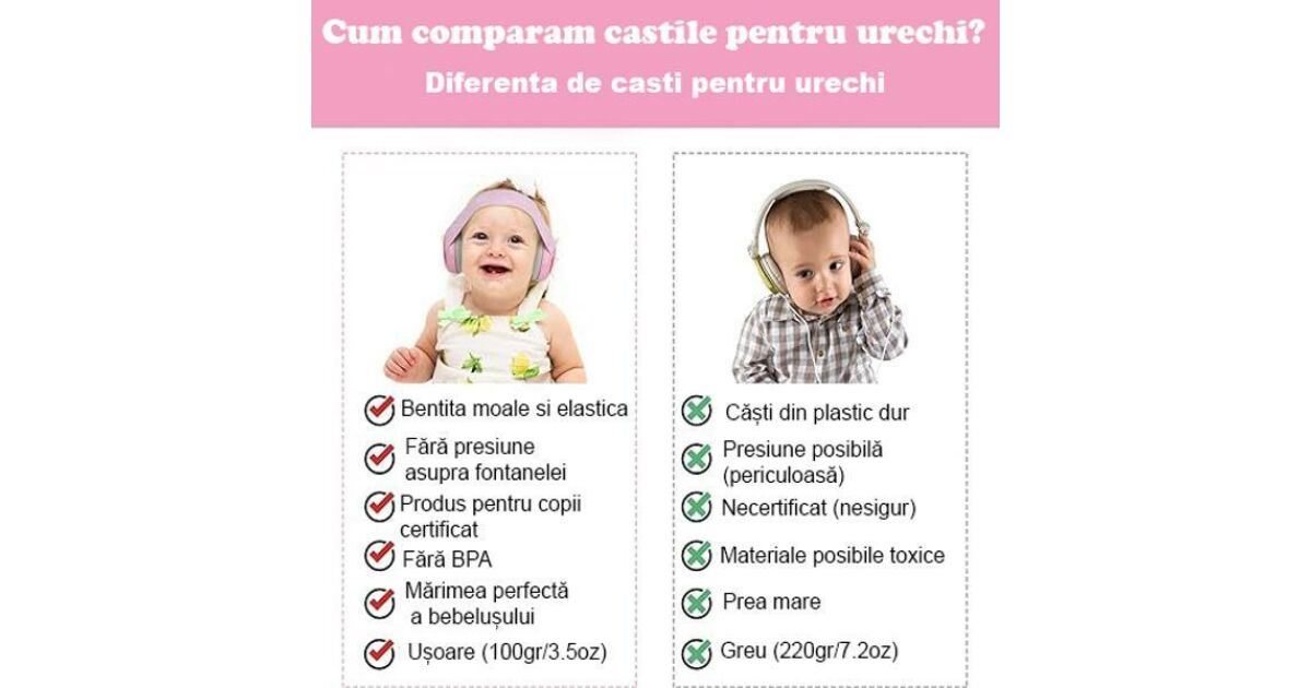 - Pohodlné nosenie: Vyrobené z mäkkého materiálu šetrného k pokožke, takže ich dieťa môže pohodlne nosiť celý deň. Náušníky poskytujú dostatok priestoru pre uši.