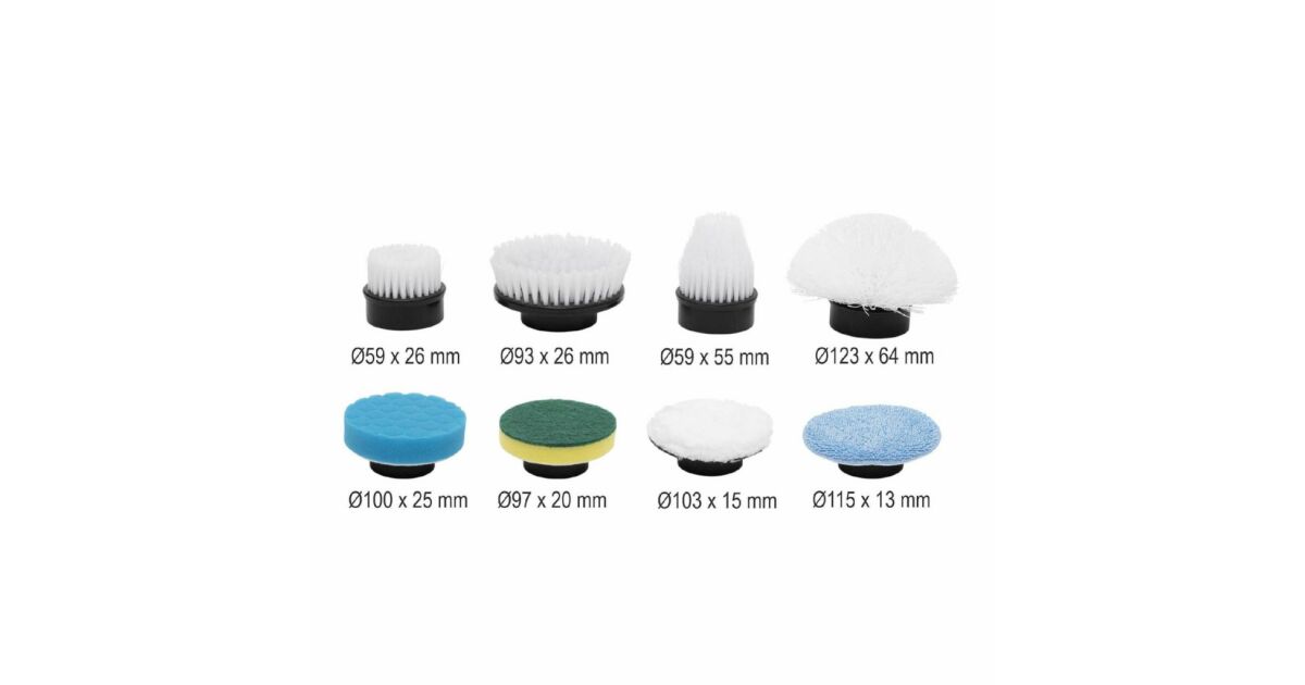 Súprava čistiacich kefiek sa dodáva s 8 hlavicami rôznych veľkostí a tvarov, ktoré sú špeciálne navrhnuté na čistenie rôznych povrchov. Výkonné čistiace hlavice uľahčujú odstraňovanie odolných nečistôt, zatiaľ čo jemnejšie hlavice sú ideálne na leštenie alebo šetrné čistenie jemných povrchov. Či už potrebujete vyčistiť sprchové vaničky, dlaždice, obkladačky alebo záhradný nábytok, tento nástroj obstojí v každej situácii.
