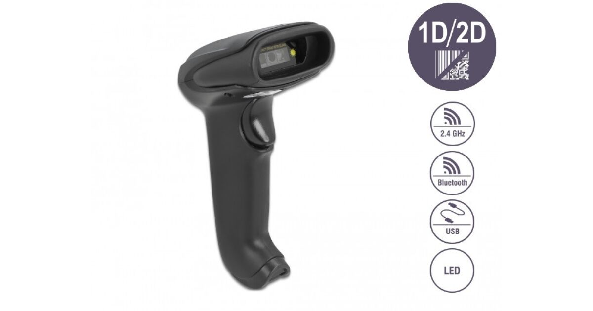 Delock Čítač čiarových kódov 1D a 2D 2,4 GHz, Bluetooth alebo USB