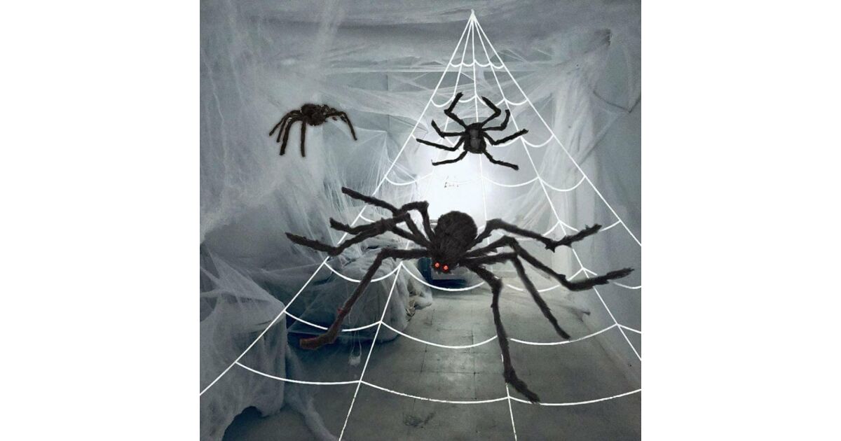 Premeňte svoj dom alebo dvor na skutočnú halloweensku nočnú moru s touto súpravou 3 obrovských pavúkov! S ich žiarivo červenými očami a telom pokrytým syntetickou kožušinou títo pavúci zaručene vytvoria atmosféru hrôzy.
