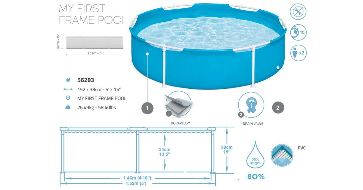 Tento detský bazén Bestway s kovovou konštrukciou zaručuje veselé špľachanie sa v horúcich letných dňoch. Je vyrobený z odolného trojvrstvového PVC materiálu s pevnou kovovou konštrukciou, vďaka čomu je mimoriadne stabilný a bezpečný pre deti. Rozmer 152x38 cm je ideálny pre najmenších a pojme 580 litrov vody.
