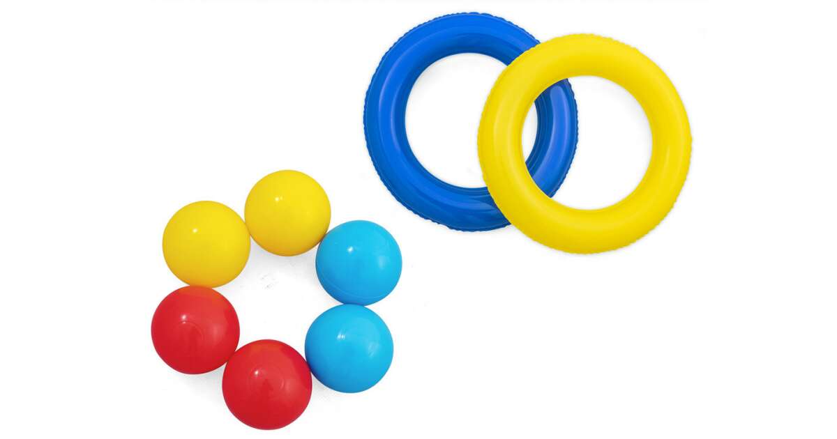 - Hracie prvky: Farebné loptičky, nafukovacie kruhy a bránky na hádzanie a hádzanie do koša. 🎯