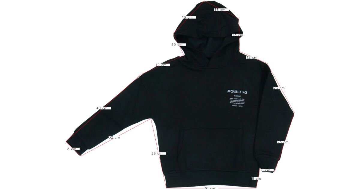 Táto čierna mikina s kapucňou od Lupilu je ideálna voľba na jarné a jesenné dni. Nápis 'Arco Della Pace' jej dodáva jedinečný vzhľad, zatiaľ čo pohodlné zloženie materiálu zaisťuje pocit komfortu.