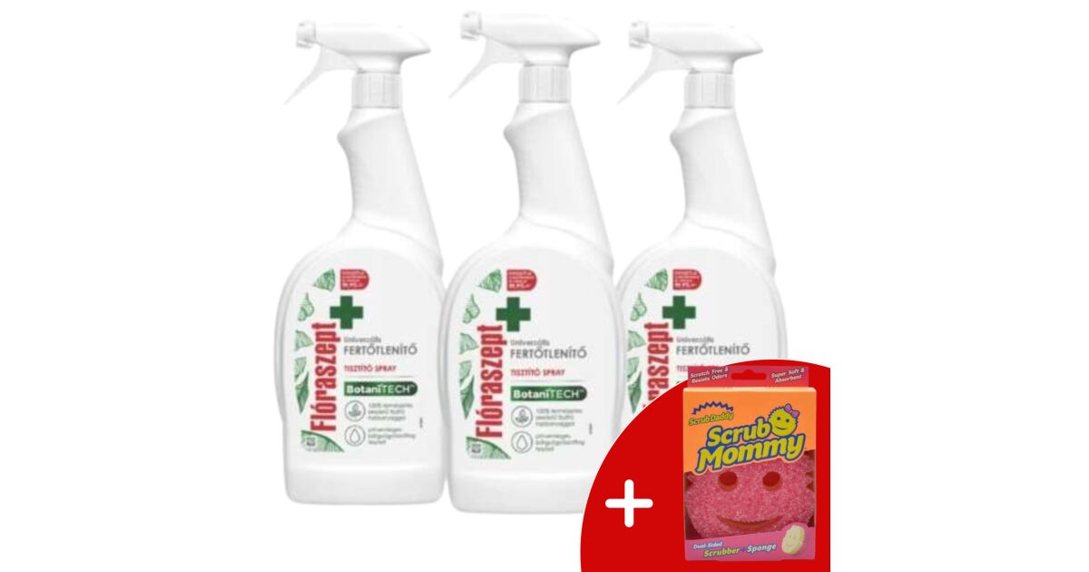 Flóraszept Botanitech Univerzálny dezinfekčný sprej 3x700ml + Hubka Scrub Mommy ako darček - Sila prírody pre čistý domov! 🌿