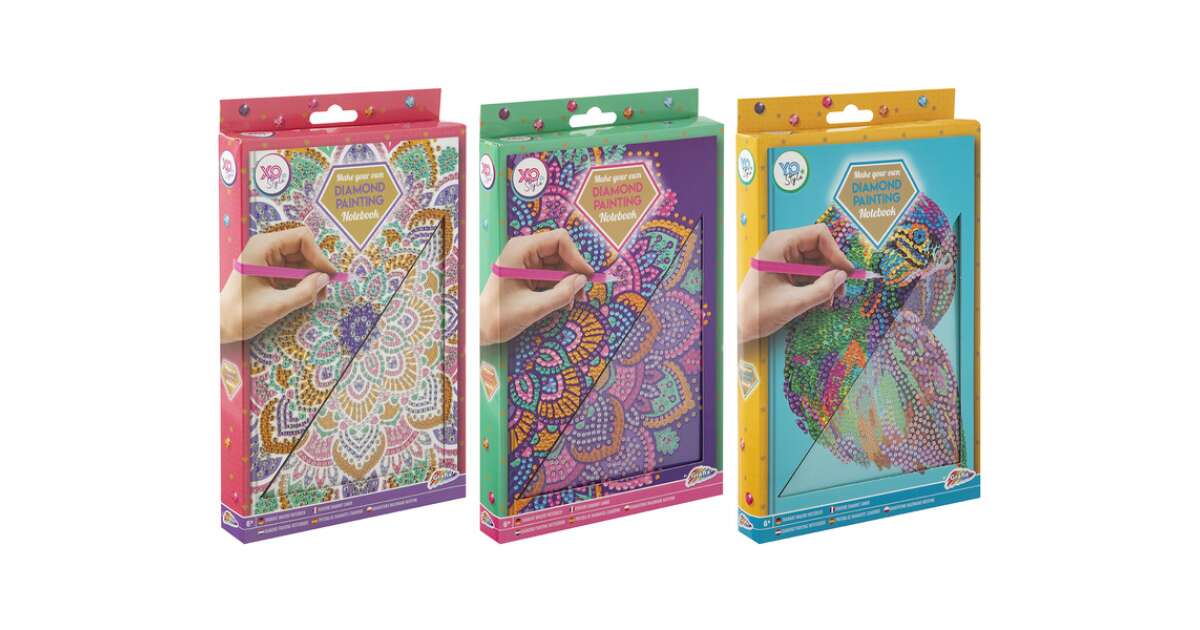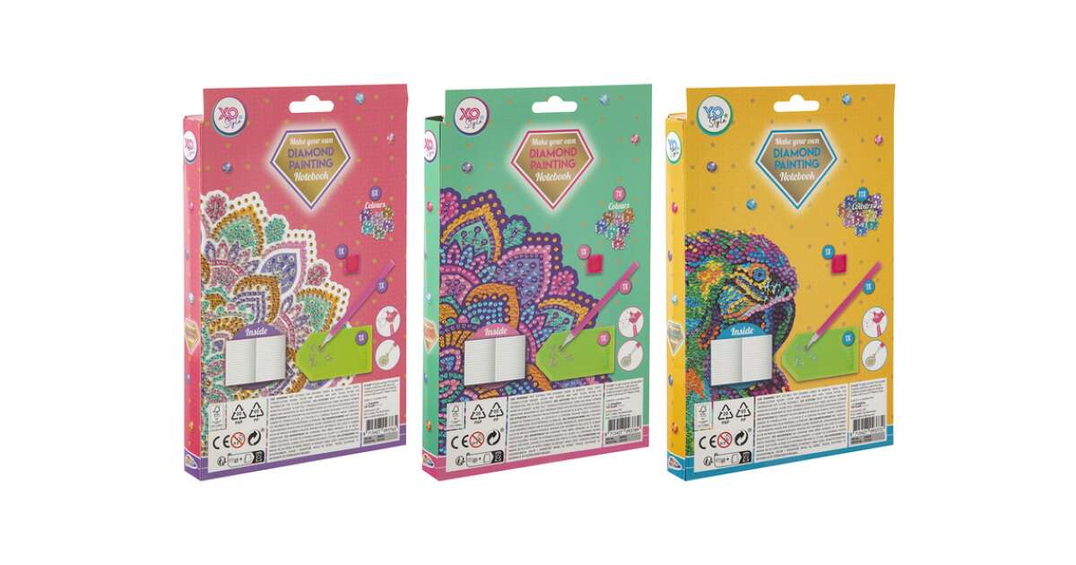 Grafix - Diamantové maľovanie A5 tvrdý obal zápisník 3 druhy - 100 strán pruhovaných