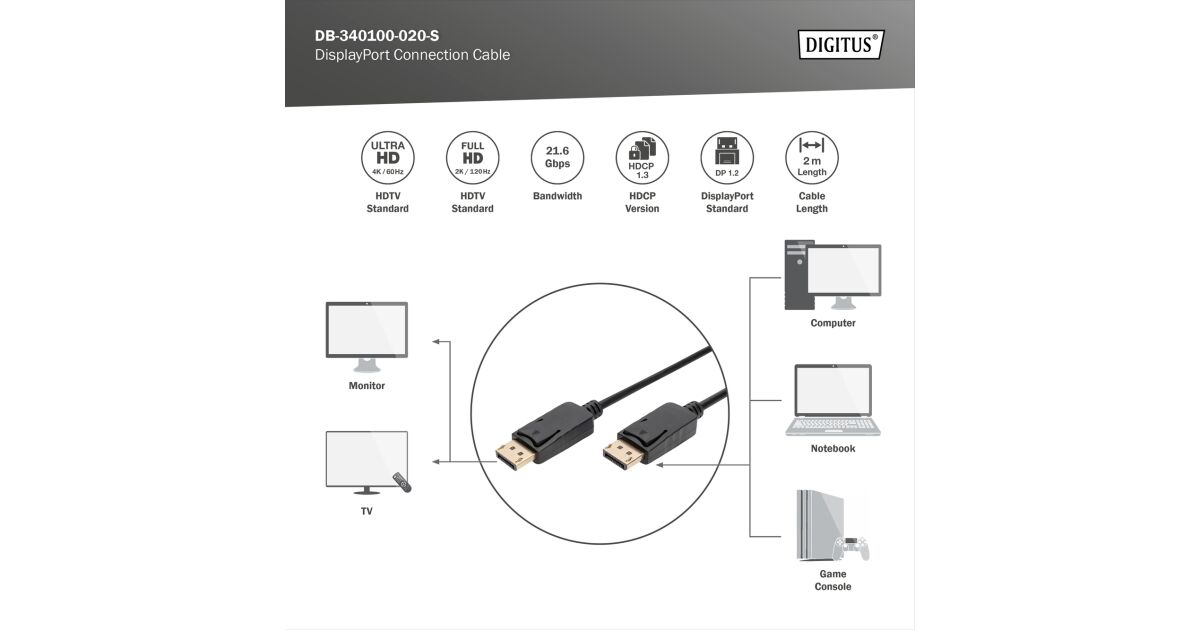 Kábel DisplayPort Digitus by Assmann DB-340100-020-S Čierna 2 m popis