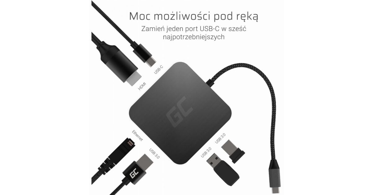 Adaptér Green Cell GC HUB2 USB-C 6v1 (USB 3.0 HDMI Ethernet USB-C) popis