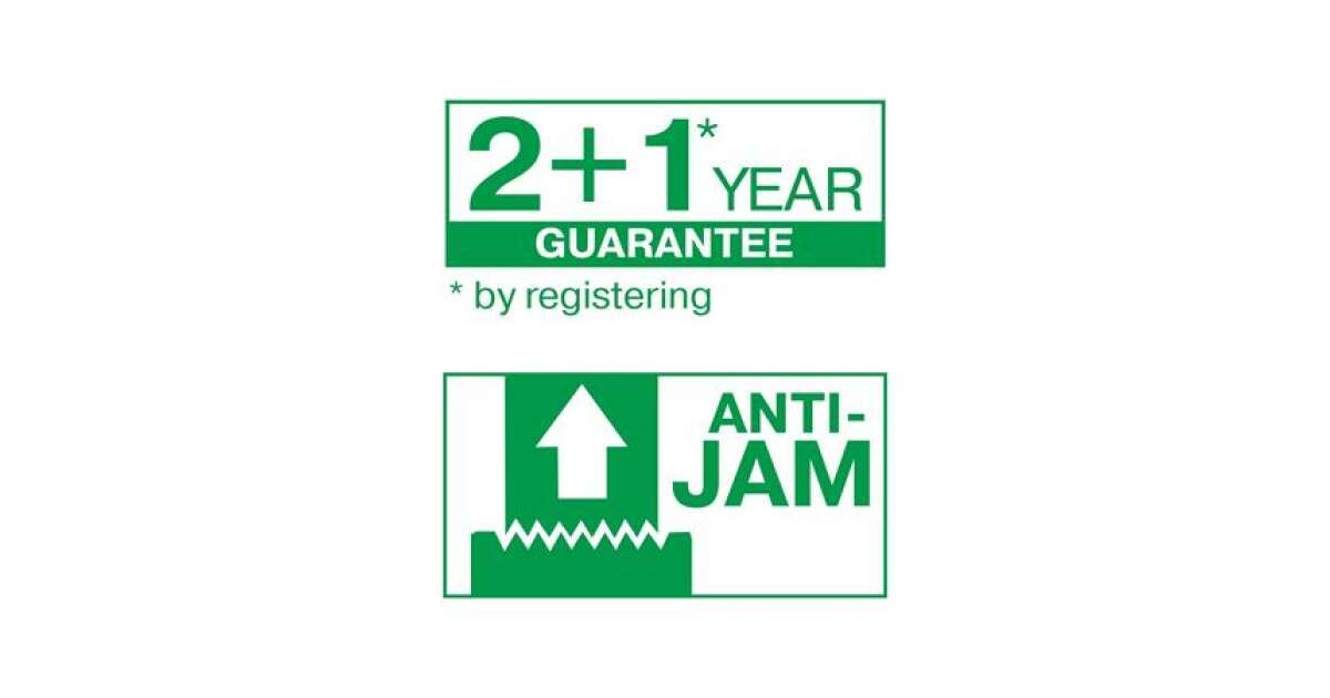 - Bez zasekávania: Automatické zastavenie pri vložení príliš veľkého množstva papiera.
