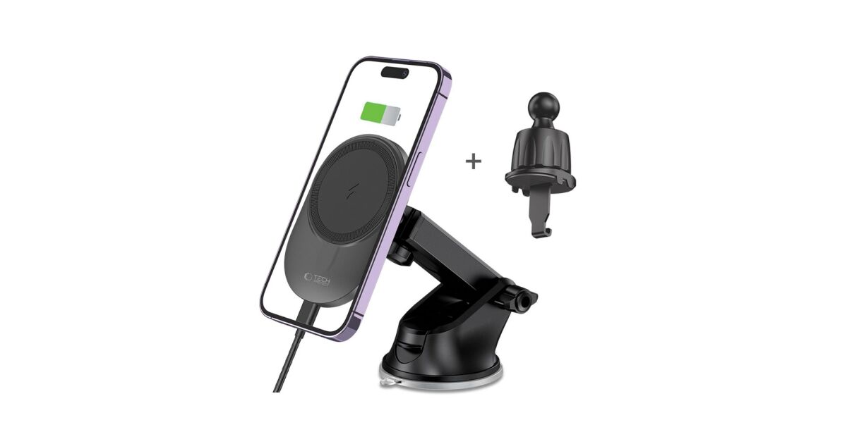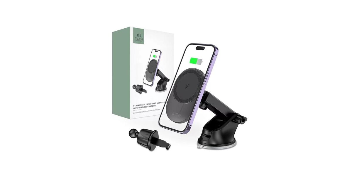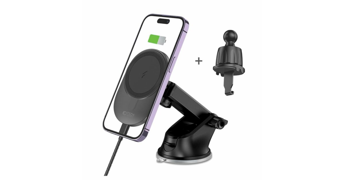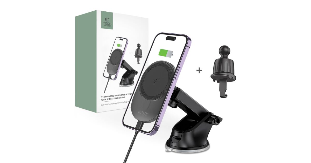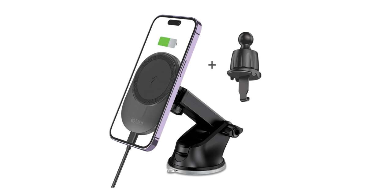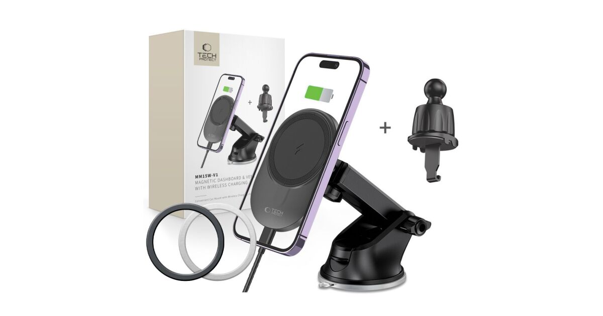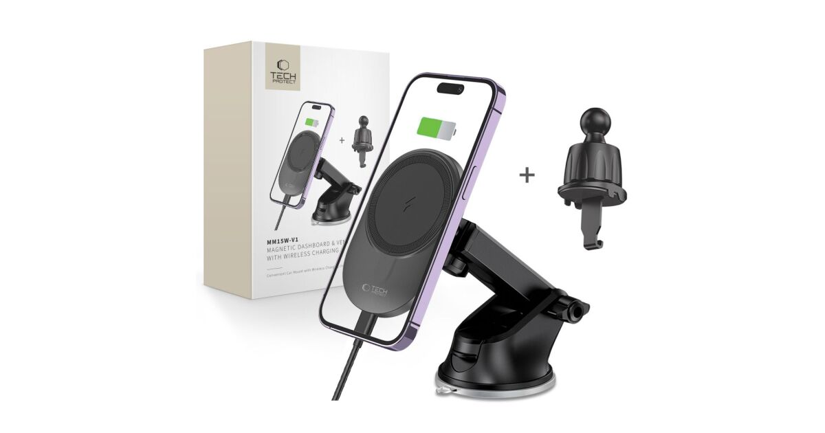 Tech-Protect Qi bezdrôtová mriežka/upevnenie na palubnú dosku do auta/rýchla nabíjačka s bezdrôtovou funkciou MagSafe – Tech-Protect MM15W-V1