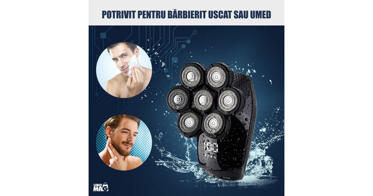 POPIS Objavte elektrický holiaci strojček 7D 5 v 1, multifunkčné zariadenie ideálne pre kompletnú starostlivosť o bradu, vlasy a nos. Vďaka pokročilej technológii 7D a flexibilným rotujúcim hlavám zaisťuje presné, rovnomerné a pohodlné zastrihávanie a holenie bez podráždenia. Je vodotesný, takže sa dá používať aj v sprche a batéria s nabíjaním cez USB ponúka dlhšiu výdrž batérie pre použitie kdekoľvek. Digitálny LED displej zobrazuje úroveň nabitia batérie a stav zariadenia a kompaktný a ergonomický dizajn uľahčuje ovládanie. Je ideálny pre mužov, ktorí chcú vždy elegantný vzhľad. VLASTNOSTI 5 funkcií v jednom zariadení: holenie, zastrihávanie, kontúrovanie, starostlivosť o nos a uši, precízne holenie. Pokročilá 7D technológia: flexibilné rotačné hlavy umožňujú jednoduchú manipuláciu a optimálne prispôsobenie sa akémukoľvek zakrivenému povrchu. Vodotesnosť IPX6: bez obáv ho používajte v sprche alebo ho jednoducho umyte pod tečúcou vodou. Vysokovýkonná nabíjateľná batéria cez USB: predĺžená výdrž batérie s rýchlym nabíjaním, ideálna na cesty a každodenné použitie. Digitálny LED displej: zobrazuje úroveň nabitia batérie a stav zariadenia pre úplnú kontrolu za každých okolností. Ergonomický a kompaktný dizajn: pre pohodlné uchopenie a presné použitie aj v ťažko dostupných miestach. ŠPECIFIKÁCIE Typ produktu: Profesionálny multifunkčný elektrický holiaci strojček 5 v 1 Funkcie: Holenie hlavy a tváre, zastrihávanie, kontúrovanie, zastrihávač nosa a uší, čistenie tváre Hlavy: 5 vymeniteľných hlavíc (holiaca hlavica 7D, presný zastrihávač, zastrihávač nosa/uší, kefka na tvár, nadstavec na kontúry) Technológia čepelí: 7D rotačné čepele z nehrdzavejúcej ocele Uhol pohybu: 360° – flexibilné hlavy v 7 smeroch Displej: Digitálny LED – zobrazenie percenta nabitia batérie, indikátor čistenia a nabíjania Vodotesnosť: IPX6 – plne umývateľná, použiteľná v sprche Batéria: Nabíjateľná lítium-iónová Výdrž batérie: až 90 minút nepretržitého používania Čas nabíjania: približne 2 hodiny Napájanie: Nabíjanie cez USB kábel (súčasťou balenia) Vstupné napätie: 5V / 1A Použitie: Mokré alebo suché Rozmery: Kompaktné, ideálne na prepravu Farba: Matná čierna so zlatými detailmi