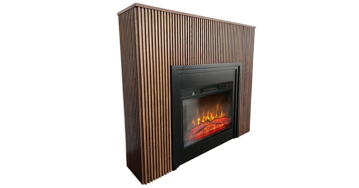 Elektrický krb s drevenými lamelami ElectricSun Lamelia Tmavý dub, s vykurovaním, so zvukom, 3 farieb plameňa, s aplikácia, Š120xV102cm