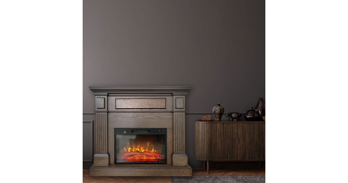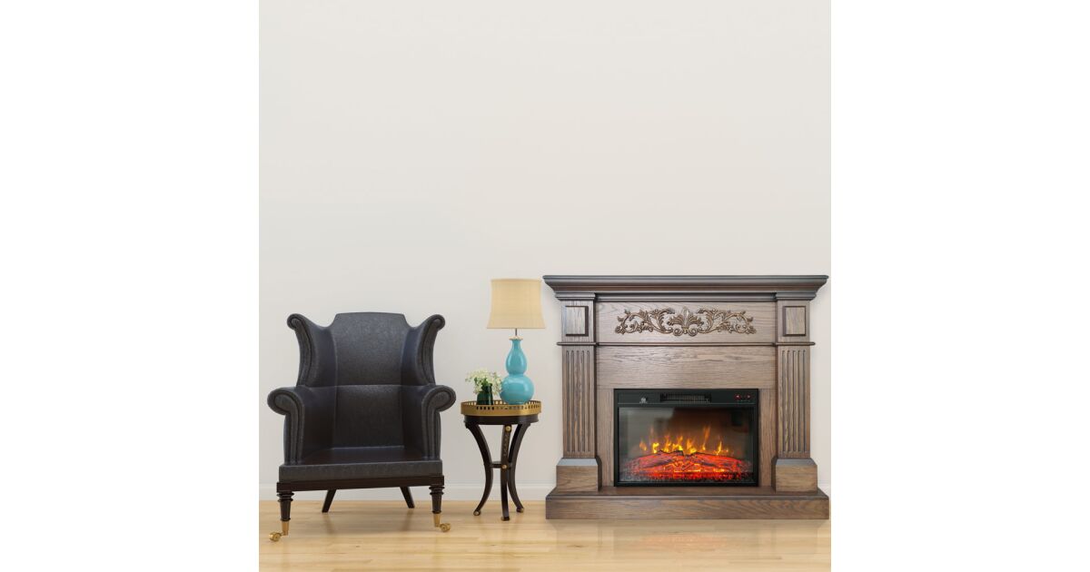 - Drevený dizajn: Dubová dyha dodáva krbu elegantný vzhľad.