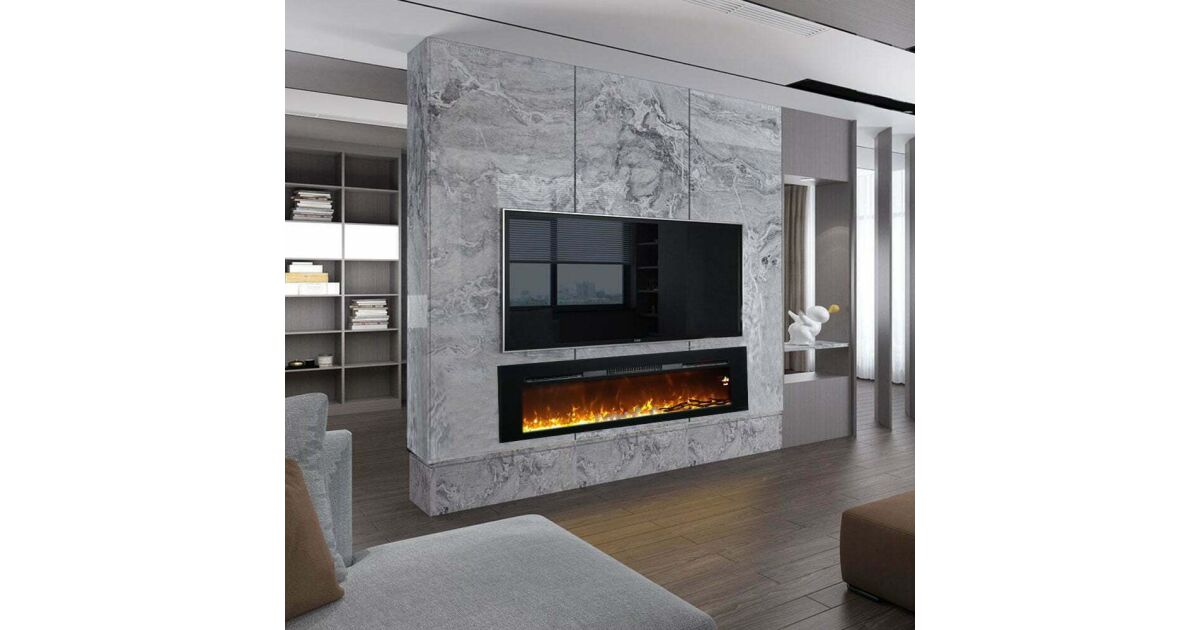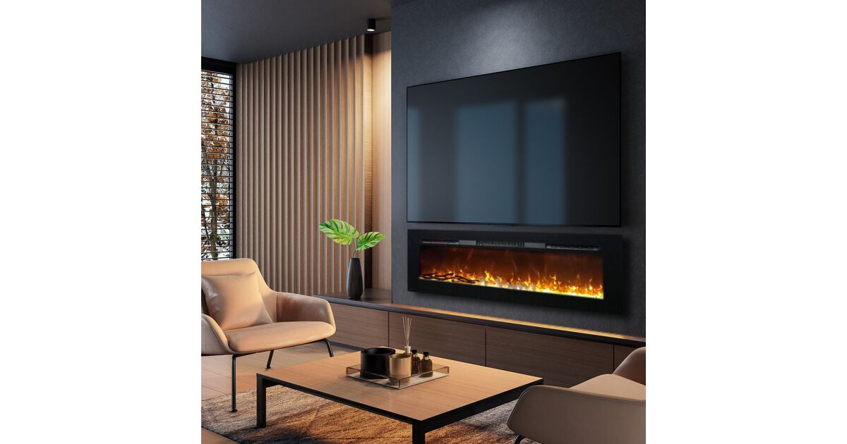 Moderný elektrický krb ElectricSun Paula Glass stredne, vstavané, nástenné a podlahové, so zvukom, 10 farieb plameňa, s aplikácia a diaľkové ovládanie, Š153xV45cm popis