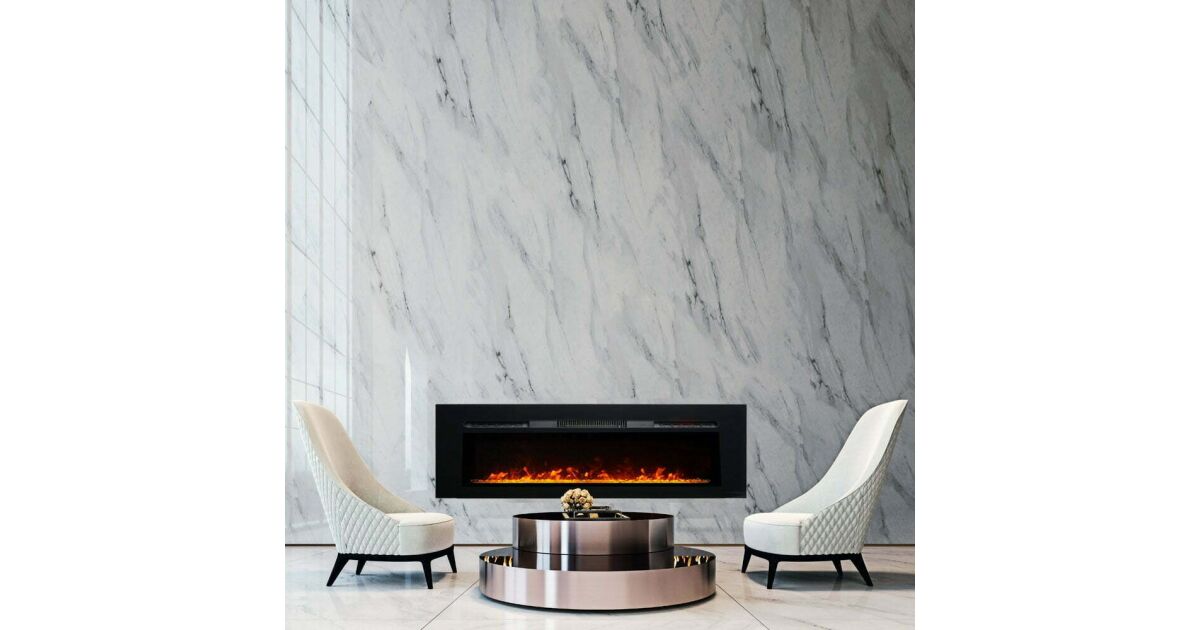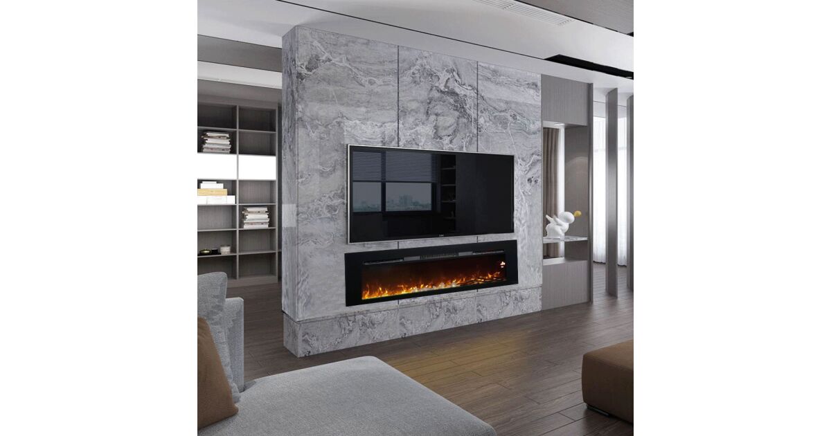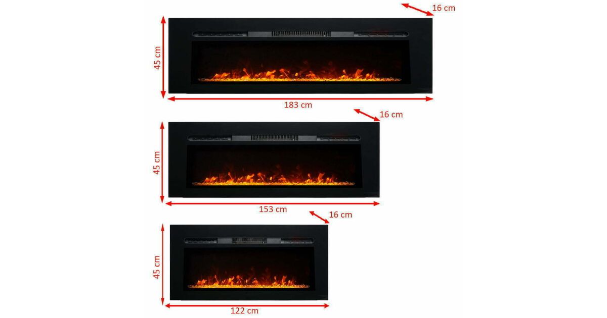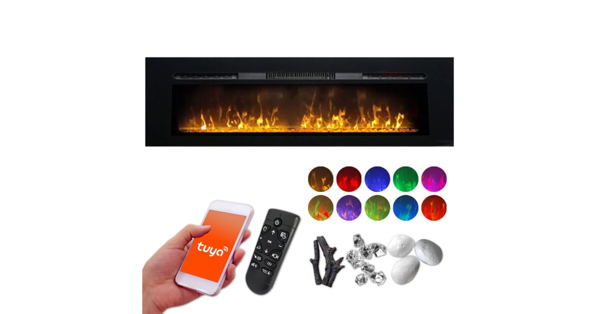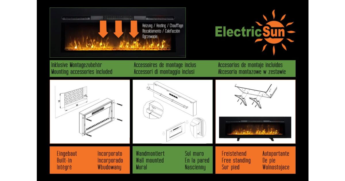 Moderný elektrický krb ElectricSun Paula Glass veľký, vstavané, nástenné a podlahové, so zvukom, 10 farieb plameňa, s aplikácia a diaľkové ovládanie, Š183xV45cm popis