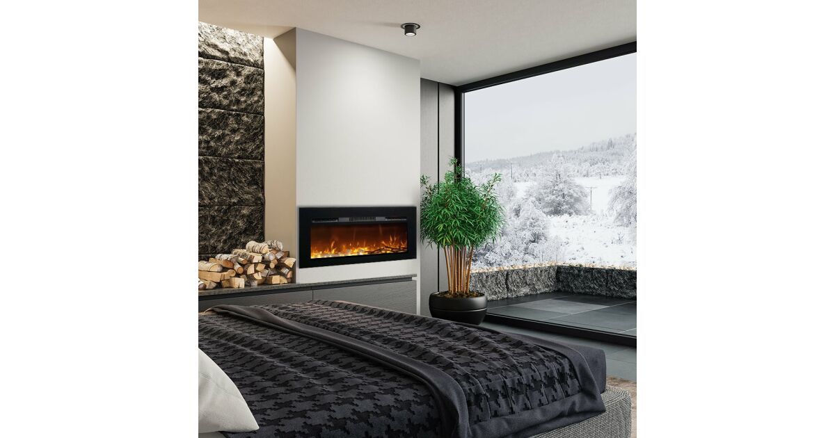 Moderný elektrický krb ElectricSun Paula Glass XS, vstavané, nástenné a podlahové, so zvukom, 10 farieb plameňa, s aplikácia a diaľkové ovládanie, Š102xV45cm