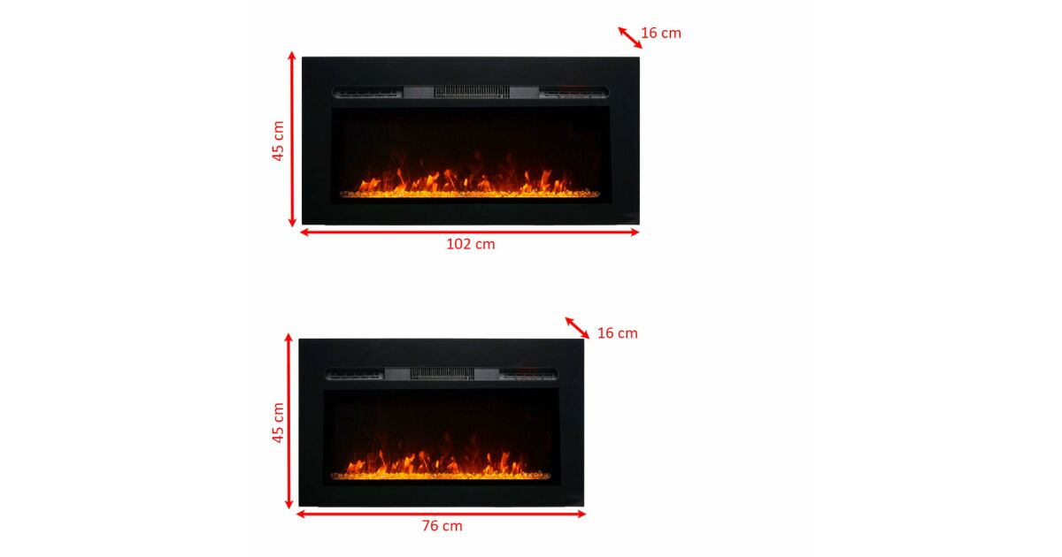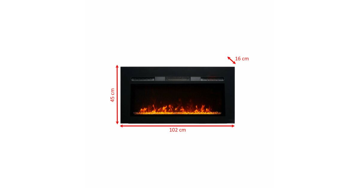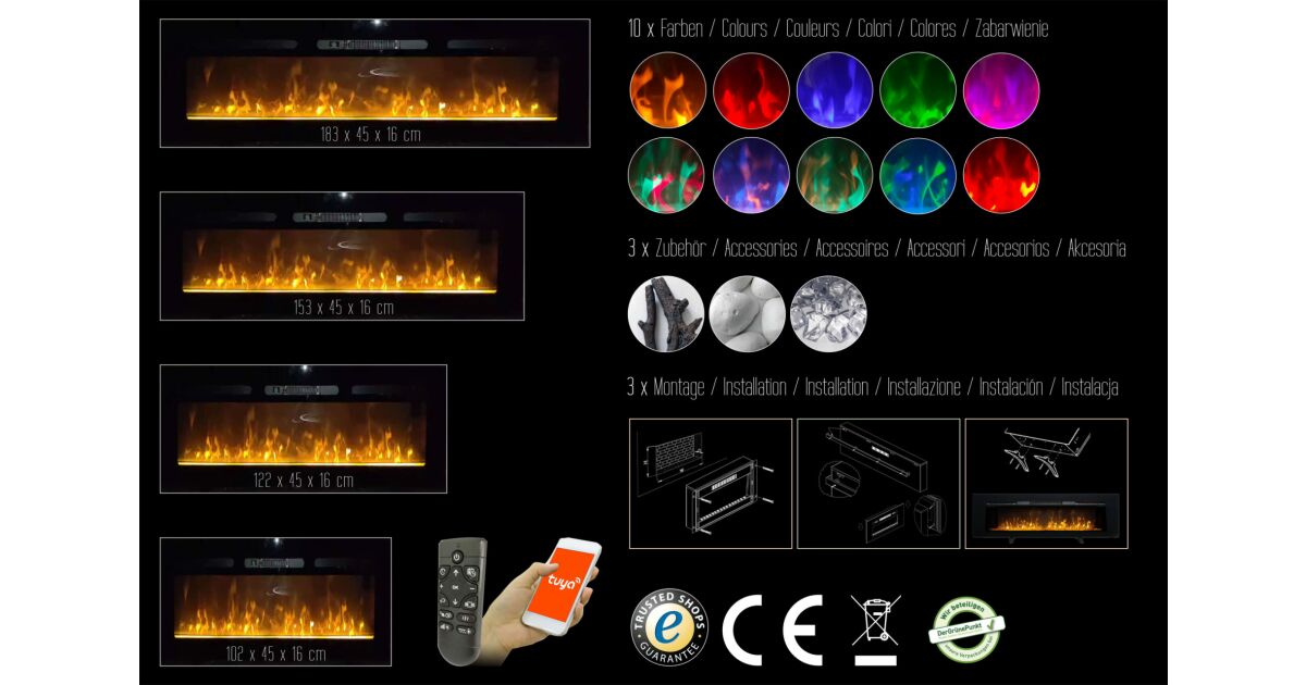 Moderný elektrický krb ElectricSun Paula Glass XS, vstavané, nástenné a podlahové, so zvukom, 10 farieb plameňa, s aplikácia a diaľkové ovládanie, Š102xV45cm popis