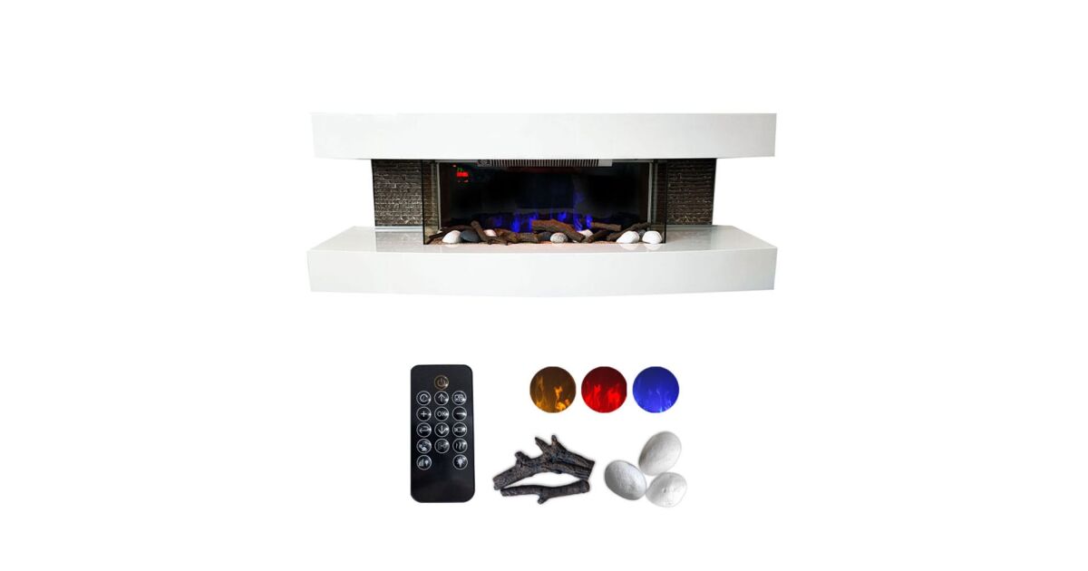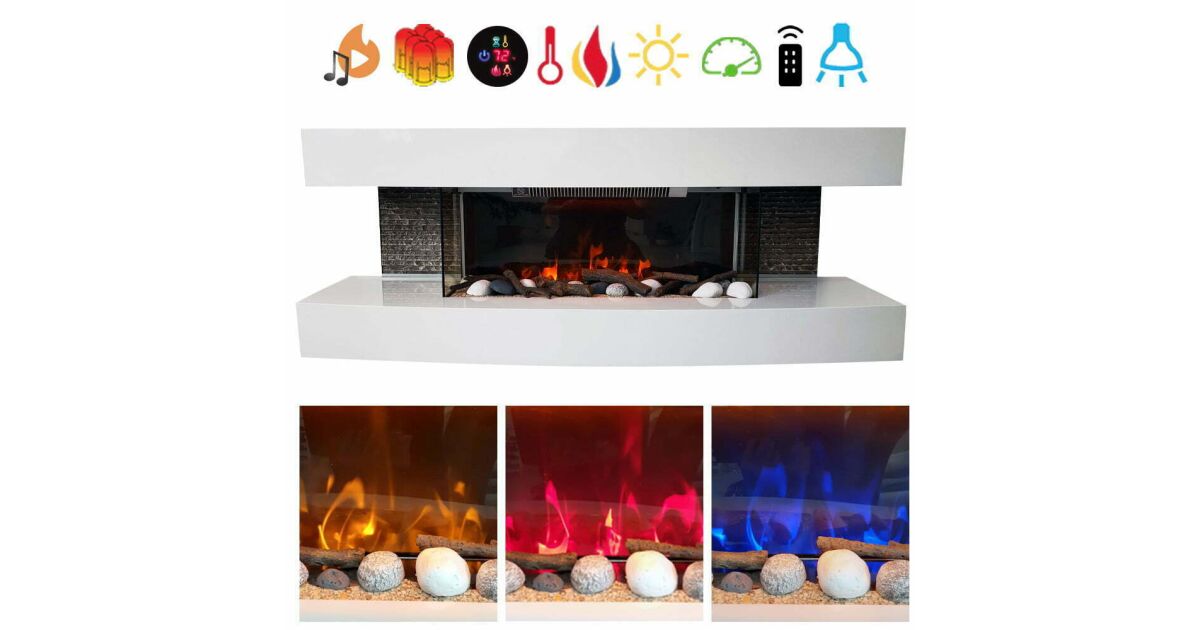 Nástenný elektrický krb ElectricSun Paula Biely stredne, so zvukom, 10 farieb plameňa, s aplikácia a diaľkové ovládanie, s vykurovaním, Š120xV46xH31cm