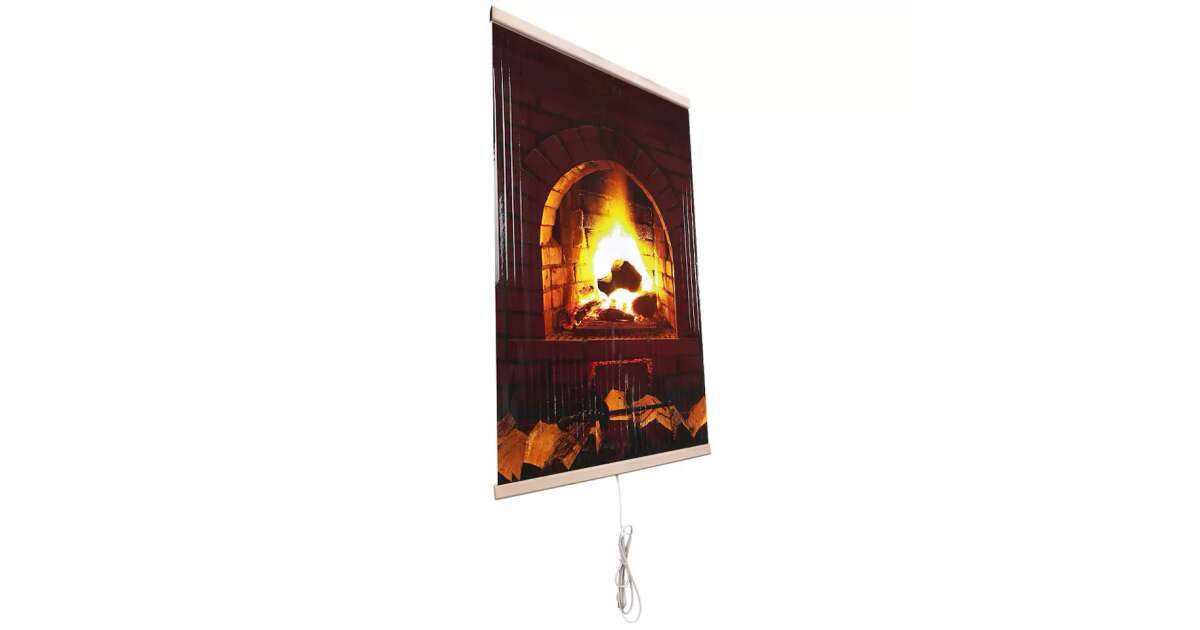 Infrapanel, dekoratívny infračervený vykurovací panel, mobilný infrapanel s obrazom krbu, 500W - skladací, 105 x 60 cm popis