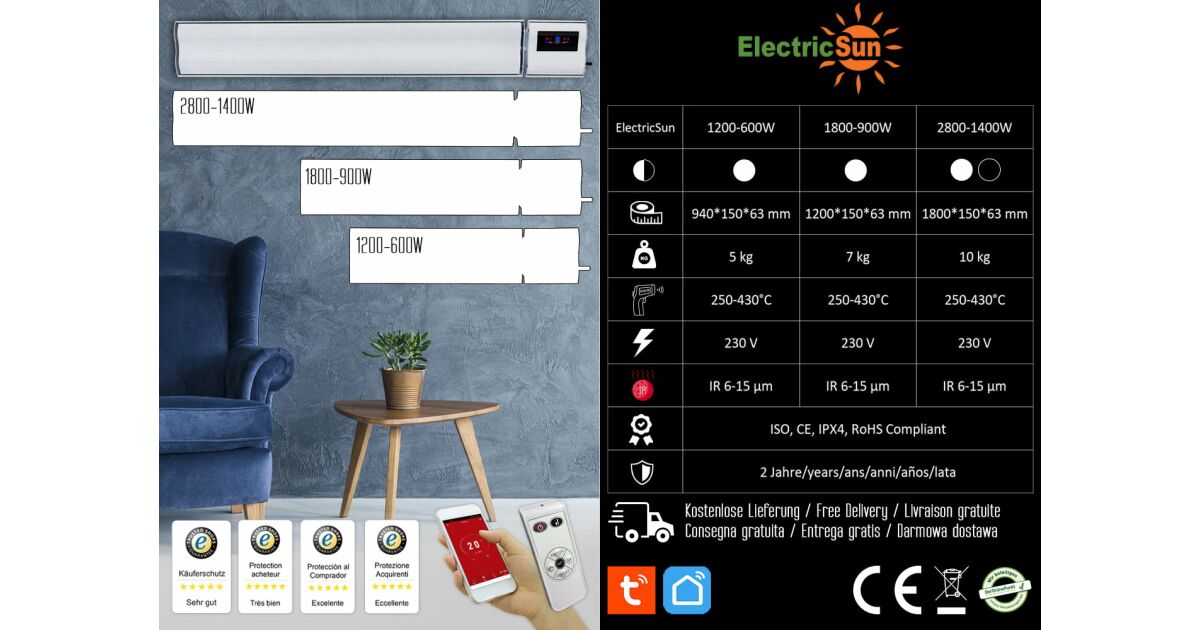 ElectricSun 2800W/1400W inteligentné infračervené vykurovanie s termostatom a WiFi – moderné a energeticky úsporné riešenie pre váš domov! 🏠