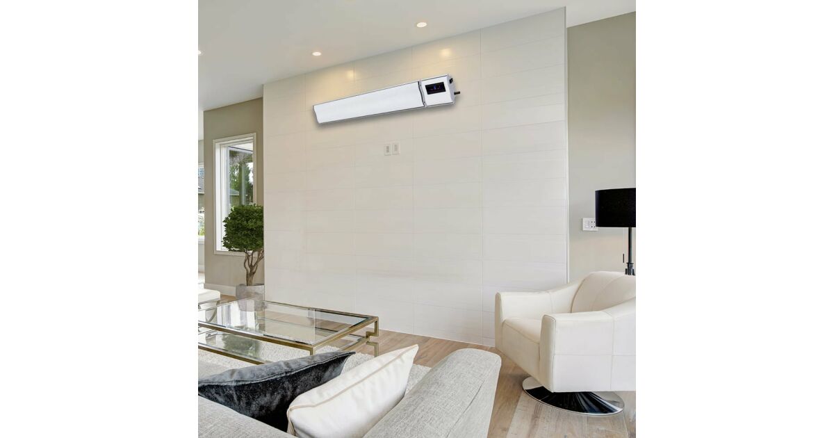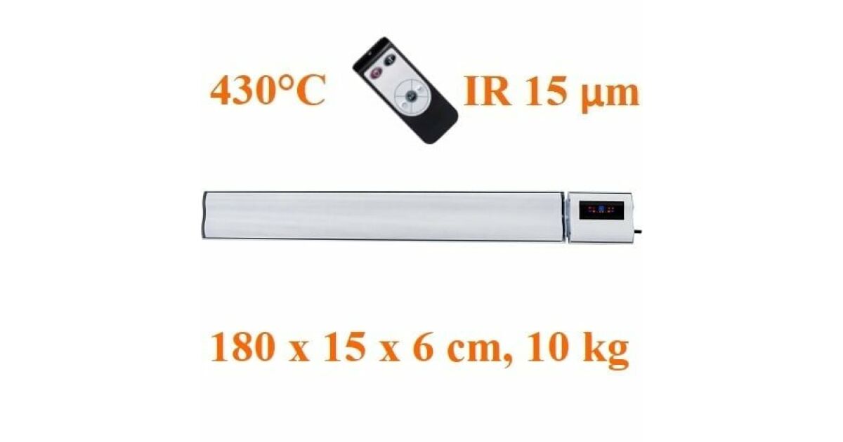 Infračervený radiátor ElectricSun 2800W a 1400W Biely, elektrický ohrievač s termostatu, APP Wifi, diaľkové ovládanie, na montáž na stenu a strop, vnútri/vonku, 180x15cm popis