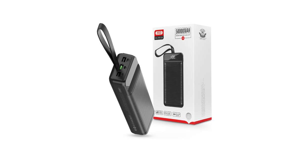 XO univerzálna prenosná stolná nabíjačka batérií - 50 000 mAh - XO PR158 Power Bank - 3xUSB + microUSB + Type-C + Lightning - QC 22,5W TYP-C - PD 20W AFC FCP - čierna