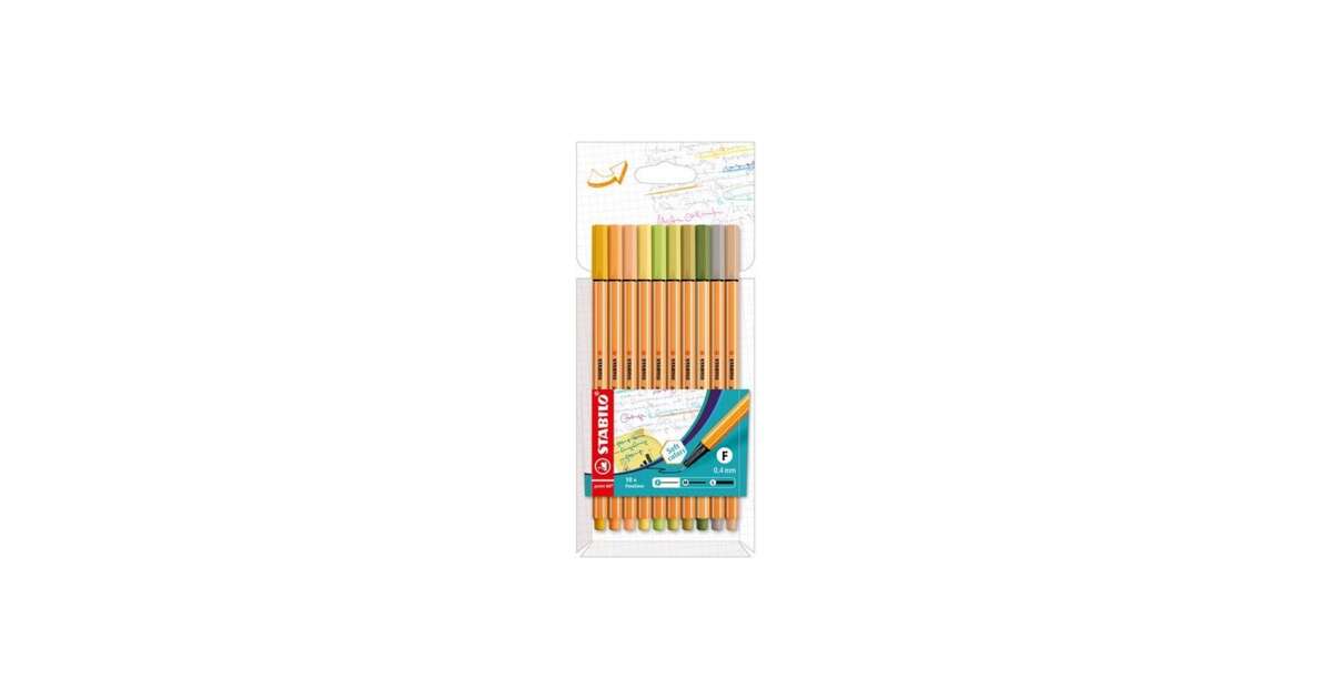 Obsah balenia: 10 ks fixiek STABILO Point 88, šírka čiary 0,4 mm, 10 rôznych farieb.