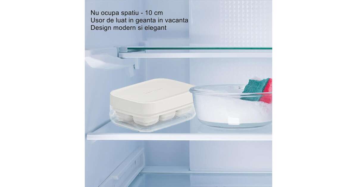 Forma na ľad Flippy obsahuje aj praktickú nádobu na skladovanie, takže ľadové kocky možno skladovať v mrazničke usporiadaným a hygienickým spôsobom. Vďaka kompaktným rozmerom forma nezaberie v mrazničke veľa miesta.
