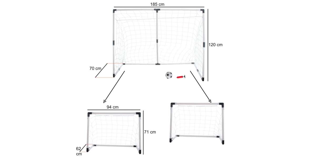 Futbalová bránka 2 v 1 s loptou a pumpou, dá sa rozložiť na 2 bránky, 185 x 120 x 70 cm