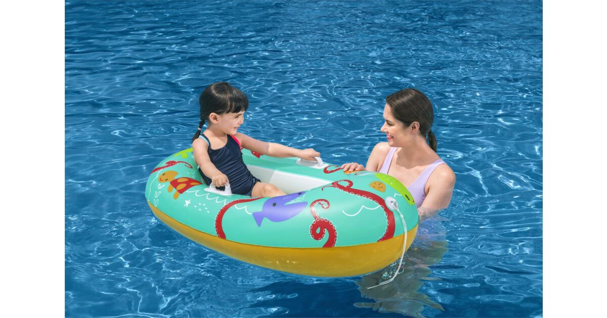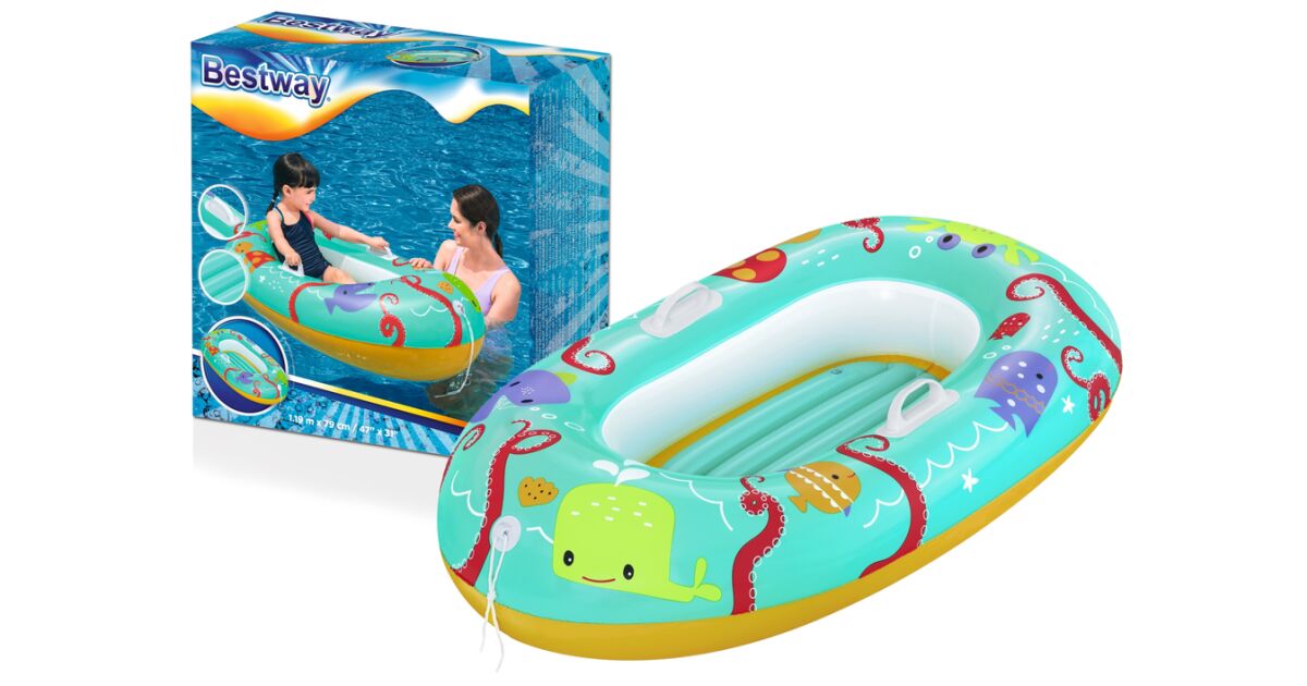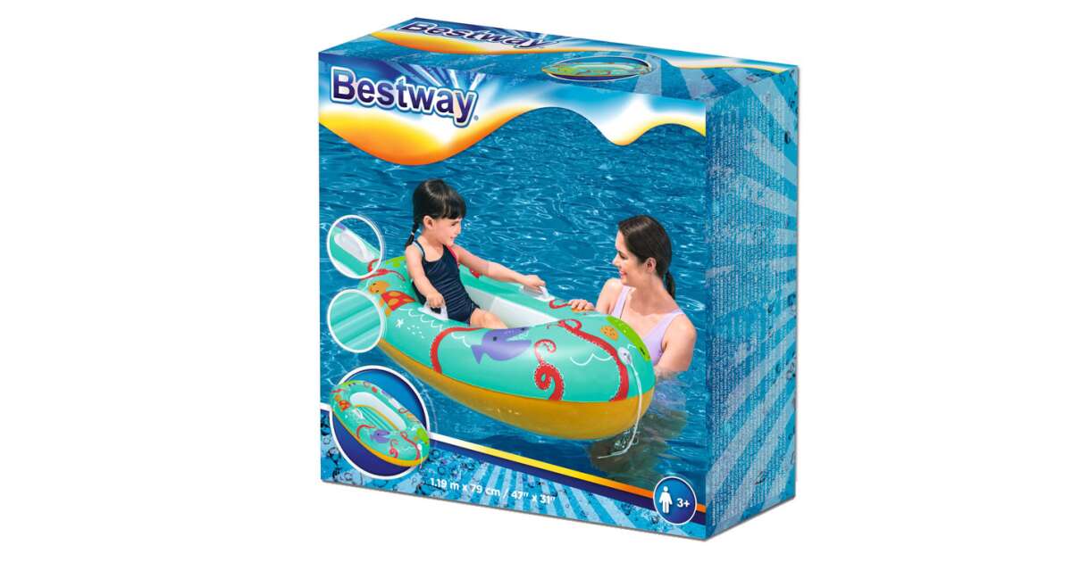 Zábavné a bezpečné vodné dobrodružstvá pre deti od 3 do 6 rokov! Tento nafukovací čln Bestway je perfektnou voľbou na pláž, k bazénu alebo k jazeru. Má pohodlné rukoväte a nafukovacie dno pre maximálne pohodlie a stabilitu.