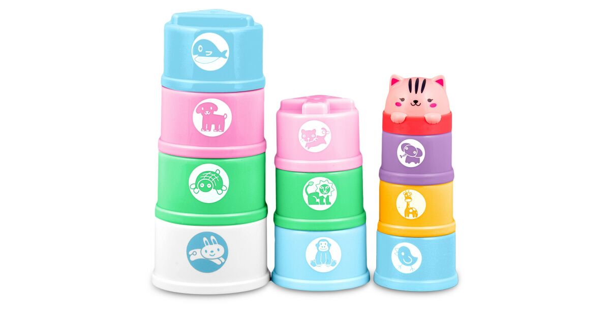 -Ricokids Montessori senzorická vzdelávacia hračka pre bábätká a deti, stohovateľná veža 3 v 1, hračka do vane, formičky do piesku, 10 kusov, +6 mesiacov popis