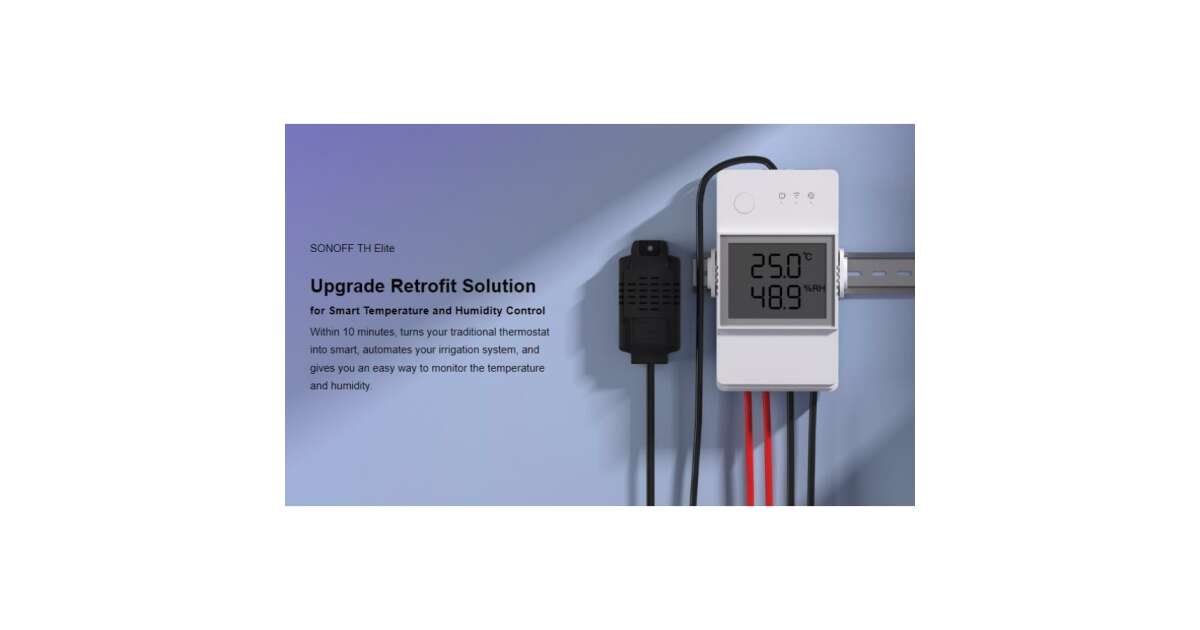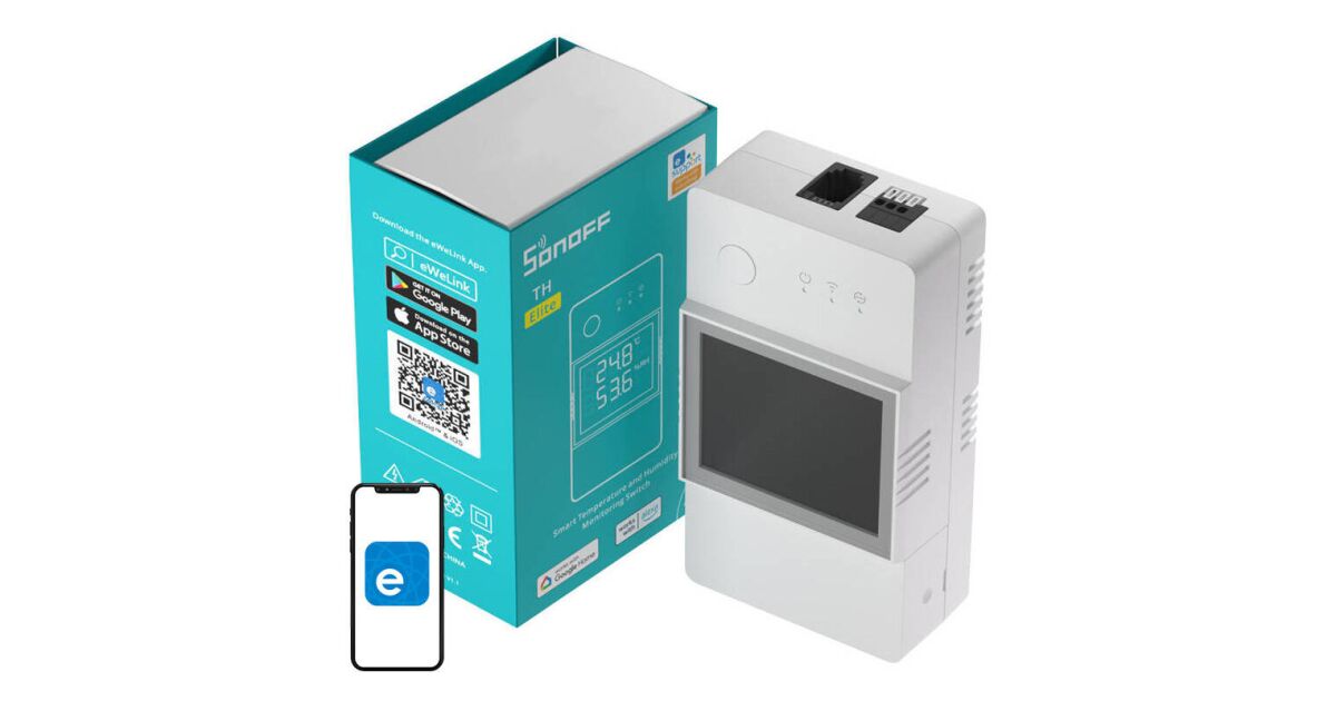 -Inteligentný WiFi spínač Sonoff TH Elite THR320D s funkciou merania teploty a vlhkosti popis