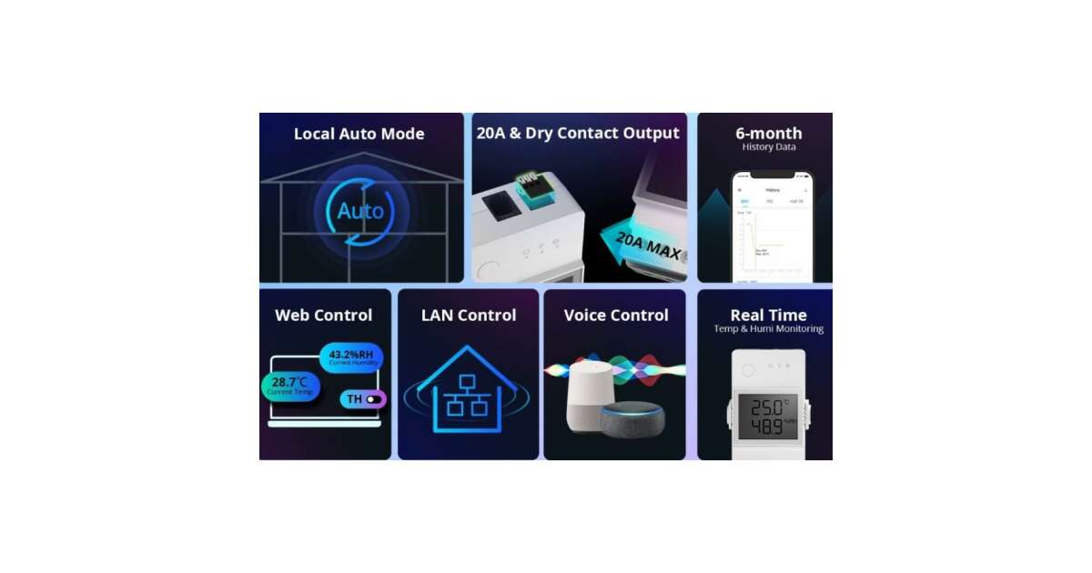 Sonoff THR320D ľahko ovládate pomocou eWeLink aplikácie zo svojho smartfónu, dokonca aj na diaľku. Nastavte si plány, automatický režim alebo použite hlasové ovládanie pomocou Alexy alebo Google Assistant. Na zabudovanom displeji môžete sledovať teplotu a vlhkosť v reálnom čase. V aplikácii si môžete zobraziť dáta v grafe a dokonca ich aj exportovať.