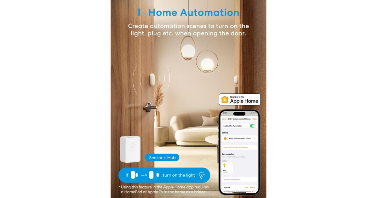 Inteligentný Meross senzor na dvere a okná, WLAN, vrátane hubu, okamžité upozornenia, kompatibilný s HomeKit, Alexou, Google Home a SmartThings