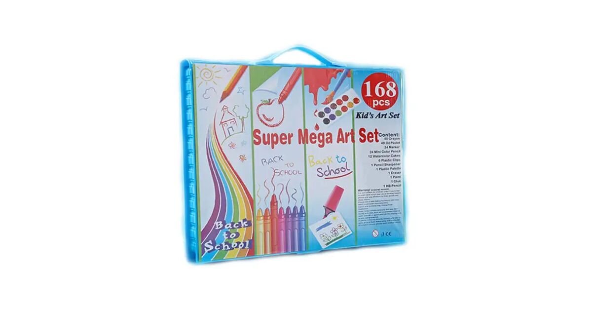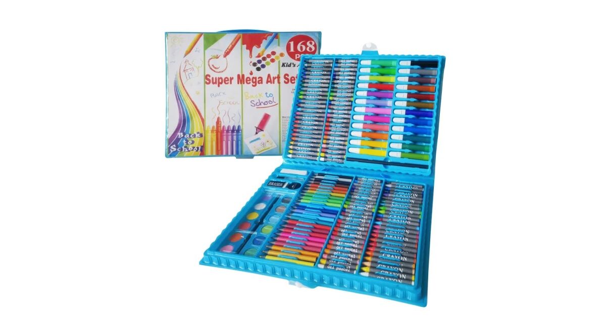 Táto 168-dielna umelecká súprava obsahuje všetko, čo malý umelec potrebuje na kreatívne vyjadrenie. Perfektný darček, ktorý zaručí hodiny zábavy a tvorenia. Vďaka praktickému kufríku sa ľahko prenáša a skladuje.