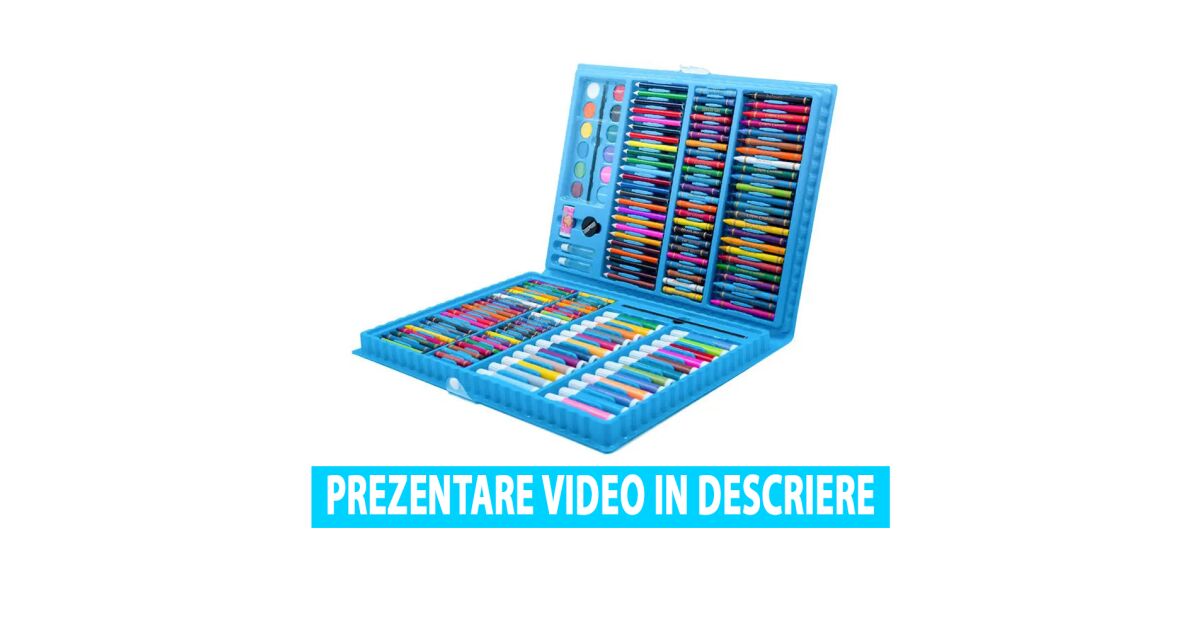 Detská sada na maľovanie a kreslenie WePro Store, 168 dielov, 24 farebných ceruziek, 48 voskových pasteliek, 48 olejových pastelov, 12 akvarelových farieb, modrá popis