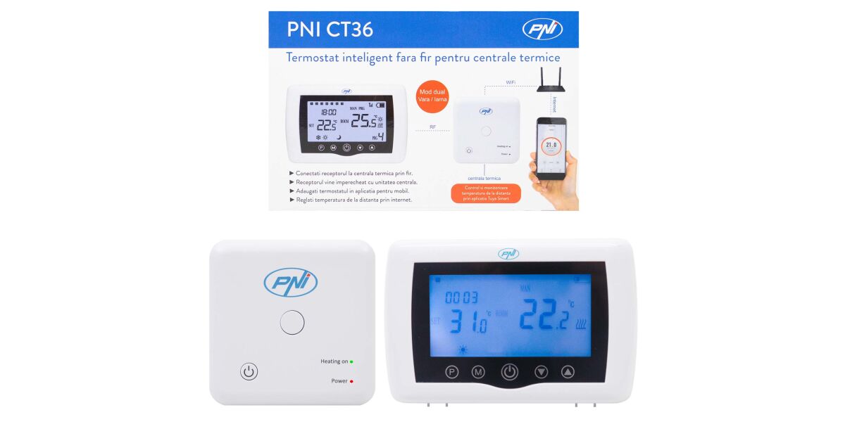 Inteligentný termostat PNI CT36 bezdrôtový, s WiFi, ovládaním cez internet, pre tepelné elektrárne, APP TuyaSmart