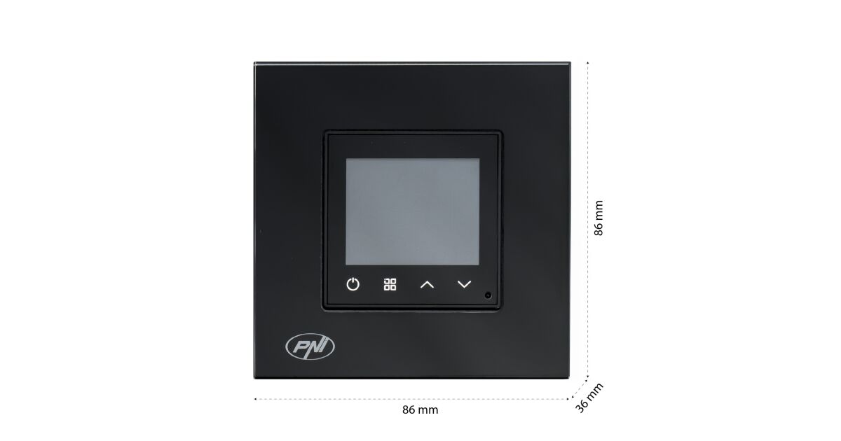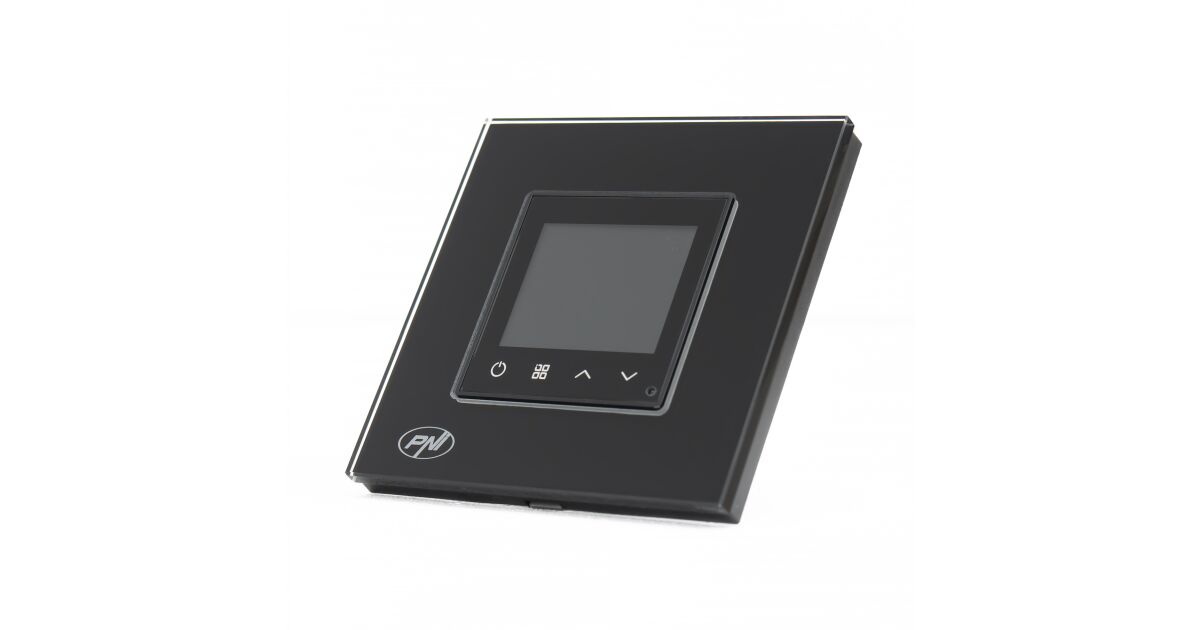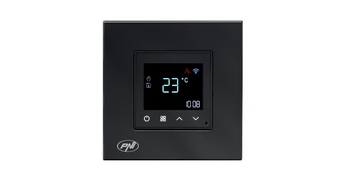 Inteligentný termostat PNI CT25B WiFi pre plynový kotol, zapustená montáž, 16A, ovládanie z aplikácie Tuya Smart, denné programovanie, manuálny/automatický režim, čierna farba