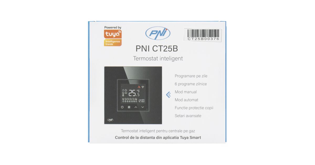 PNI CT25B je inteligentný termostat so zapustenou montážou, pomocou ktorého môžete diaľkovo ovládať svoj plynový kotol cez WiFi pomocou aplikácie Tuya Smart. Či už ste doma alebo preč, vždy máte kontrolu nad kúrením.