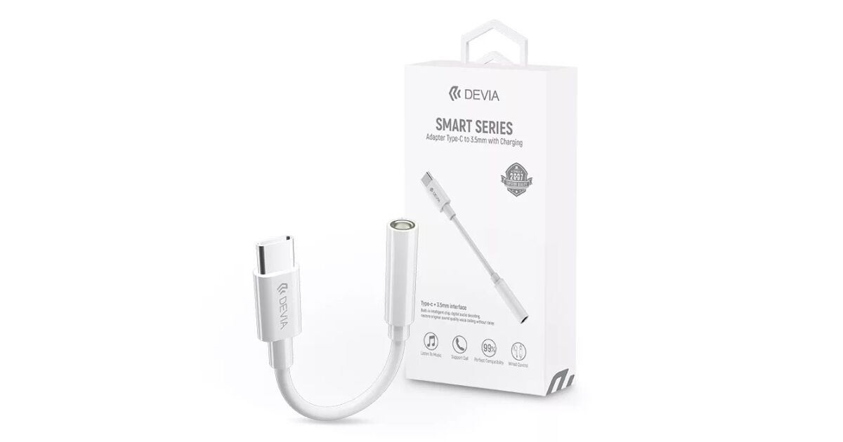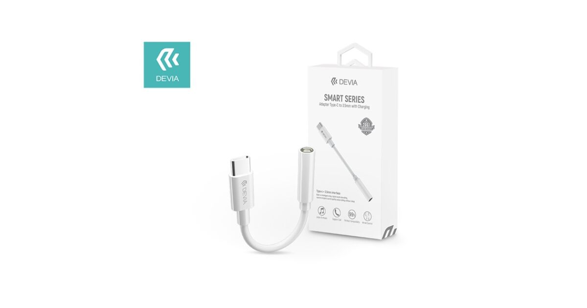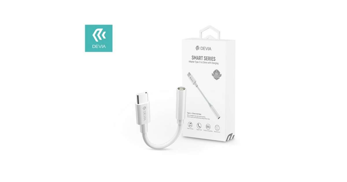 Devia Type-C – 3,5 mm jack audio adaptér – Devia Smart Series Adaptér Type-C na 3,5 mm s nabíjaním – biela